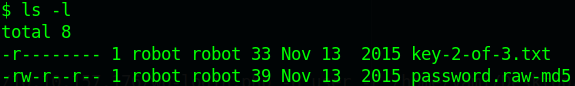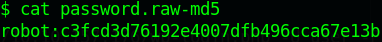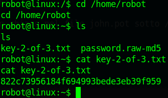 We have to crack md5 hash to find robot’s password. Use John The Ripper.