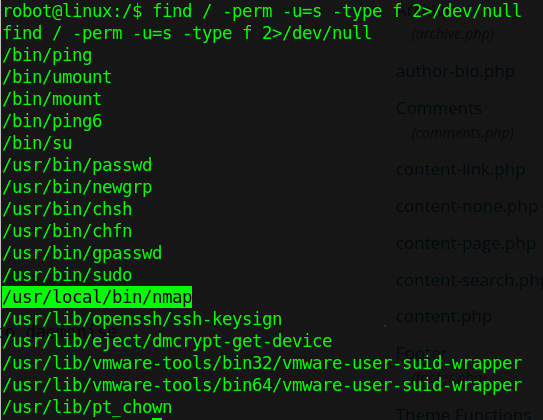 But we also can run the following command which searches for all files having SUID bit set: find / -perm -u=s -type f 2>/dev/null