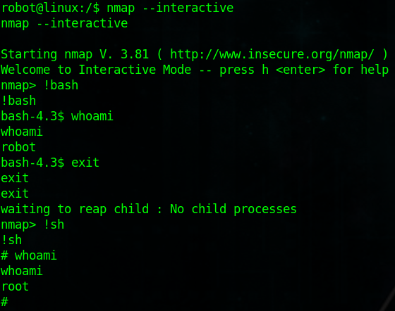 TryHackMe hint suggested nmap. It is version 3.81 and it has an interactive mode in which nmap runs with “sudo” privileges. (https://vk9-sec.com/nmap-privilege-escalation/).
